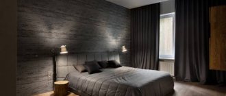 If the decoration is made in dark colors, it is necessary to provide many light sources, otherwise the bedroom will look intimidating at dusk and at night.