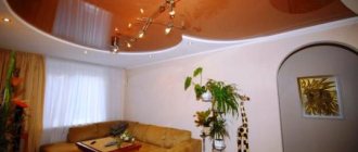 You should not count on a minimal reduction in the height of the premises. Ceilings will become lower by ten to fifteen centimeters at best. These are the standard dimensions of a plasterboard ceiling and it is this that can become the basis for creating an insulating structure. An insulating material is placed in the cavity of the frame, the frame is mounted on special vibration-damping suspensions, and otherwise, such a ceiling will be no different from a standard gypsum plasterboard composition.