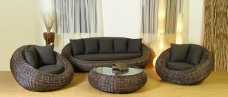 Готовая (остается только собрать) садовая мебель выдерживает вес двух-трех человек, имеет мягкие сиденья и часто дополняется навесом, защищающим от солнца или дождика.
