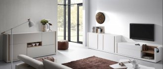 Отсутствие округлых форм в интерьере — геометрия в чистом виде (конструктивизм), минимализм и функциональность. Цветовая гамма обязательно должна быть светлой для создания эффекта свободного пространства.