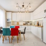 3. Кухонные шкафчики монтируются после того, как установлены нижние тумбочки, хотя многие делают и наоборот, а в самом конце устанавливаются электроприборы, в том числе вытяжка и раковина.