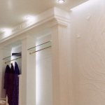 Если позволяет площадь, потолок можно оформить декоративными балками