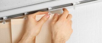 Длина ламелей «в пол» — это расстояние от пола до потолка – минус толщина карниза, минус высота подвеса, минус 20-30 мм – провисание скрепляющих ламели цепочек.
